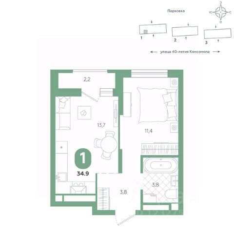 Евроформат объединяет кухню и гостиную в одно просторное помещение, что создает ощущение свободы и открытости пространства. Такая планировка предлагает гибкость в оформлении интерьера, позволяя обустроить зону в соответствии с личными предпочтениями, будь то уютный уголок для чтения или стильная обеденная зона. Идеально для тех, кто стремится к гармонии практичности и эстетики в своем доме. Квартира располагается в ЖК "Комсомольский" — жилом комплексе комфорт-класса. Здесь вы будете наслаждаться беззаботной жизнью, ведь ваш дом — воплощение практичности, безопасности и надежности. Для удобства предусмотрены колясочные на первых этажах домов, где можно оставить велосипеды и коляски в тепле. За безопасность отвечают система электронных ключей и видеонаблюдение. Еще здесь собственная котельная, поэтому в доме всегда будут горячая вода и оплата счетов только за фактически потребленное тепло. ПРЕИМУЩЕСТВА ЖК На этаже 14 квартир Красивые и функциональные парадные с мягкой и стильной зоной для отдыха, книгообменником, встроенными почтовыми ящиками и нишами для сумок Колясочные с доступом по ключу IP-домофоны Тихие лифты с плавным ходом О ПРОЕКТЕ ЖК "Комсомольский" строится в спокойном Кировском районе Екатеринбурга в границах улиц Сыромолотова — Рассветная — 40-лет Комсомола. Комплекс состоит из трех домов переменной этажности, которые выделяются динамичными линиями, выразительными фасадами и стильными лоджиями. ЛОКАЦИЯ Всё, что необходимо для повседневной жизни, находится недалеко от дома: школы, детские сады, продуктовые магазины, фитнес-клубы. Дорога до центра города на машине займет всего 10 минут — достаточно повернуть с улицы 40-летия Комсомола на улицу Владимира Высоцкого. Рядом с этим перекрестком начинается "Тропа здоровья" — большой терренкур вдоль "Каменных палаток". 10 мин до центра 3-4 минуты до школы No 82, гимназии No 176 4-5 минут до детских садов No 208, No 583, 266 20 мин до Свердловского областного медицинского колледжа и Центральной городской больницы No 7 В рамках стратегического развития района на первых этажах домов появятся коммерческие помещения, в которых откроются магазины и кафе. Следует учесть, что к 2030 году в Кировском районе планируется формирование регионального рекреационно-оздоровительного кластера, строительство ветки метро, расширение и модернизация старых промышленных зон социальной и бизнес-инфраструктуры, что приведет к созданию комфортной среды для жизни. Кроме того, в стратегию входит развитие Шарташского лесного парка как центра регионального и международного туризма. СПОСОБЫ ПОКУПКИ Ипотека: подберем выгодные условия в нескольких банках, чтобы вы могли выбрать лучшее Материнской капитал: можно использовать в качестве первоначального взноса Рассрочка: платите частями без % Сертификаты: позволяют оплатить часть стоимости квартиры О КОМПАНИИ "Паритет Девелопмент" — это современный и ответственный подход к реализации проектов в сфере жилищного строительства. Компания формирует среду
