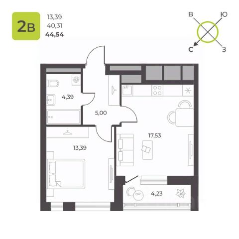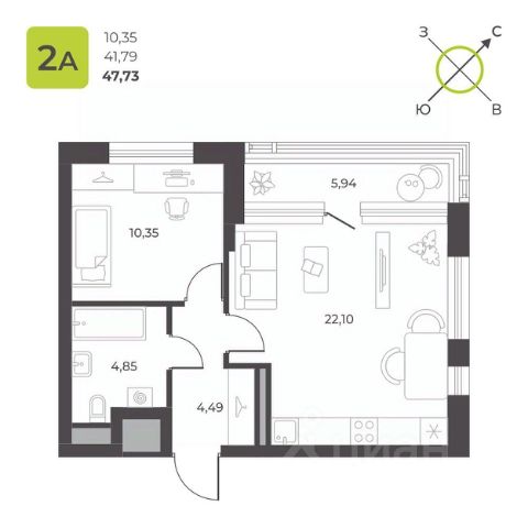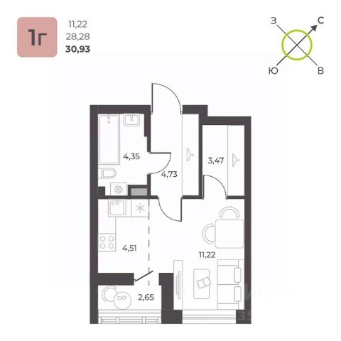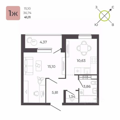В продаже просторная 1-к квартира - 37,77 кв.м. в ЖК "КВАРТАЛ 12" с отделкой white box.