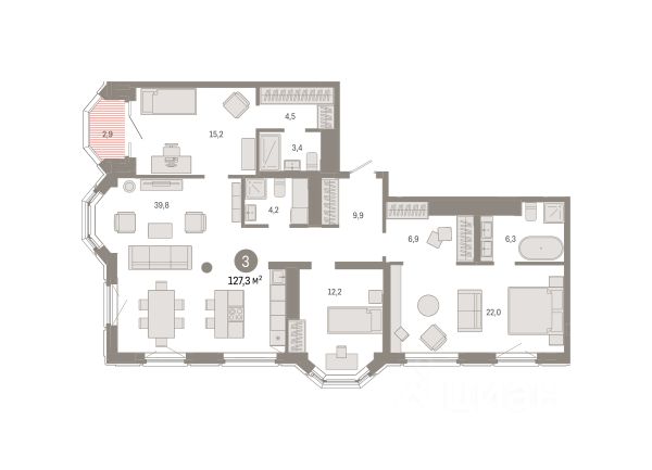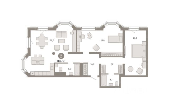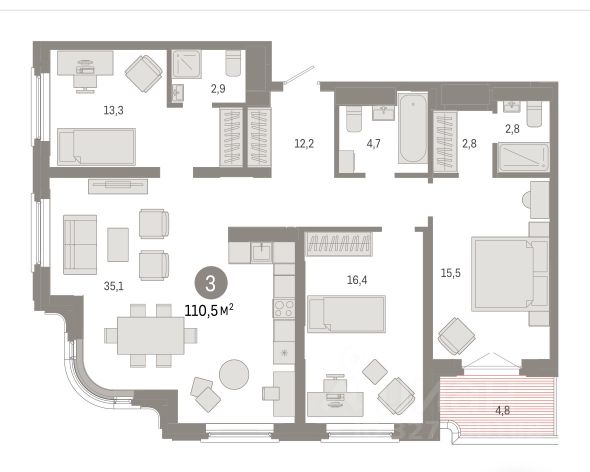 Квартира с кухней-гостиной и тремя спальнями в квартале "На Некрасова". Особенности планировки: второй санузел, второй свет, лоджия, мастер-спальня, окна в пол, окно в коридоре, предчистовая отделка, разнесённые спальни, терраса на крыше. квартиры в нашей базе: НКР02-Ж1.24.3. Квартал "На Некрасова" состоит из четырёх домов переменной высотности от 7 до 25 этажей с тихими дворами и подземным паркингом. Особенность квартала — общественные пространства и благоустройство нового уровня: городская площадь с фонтаном, центральный пешеходный бульвар, ландшафтный парк, камерные сады и зелёные кровли домов. Из окон квартир открывается вид на Исеть. В квартале спроектированы помещения под магазины, кафе, аптеки и соседский центр. Проект расположен в центре Екатеринбурга в границах улиц Печерская — Некрасова рядом с управлением железной дороги и крупной транспортной магистралью — улицей Челюскинцев. В пешей доступности — школа 208, сквер, санаторий, фитнес-центр с бассейном. В 10 минутах ходьбы находится станция метро "Динамо", Олимпийская набережная, Дворец игровых видов спорта, спортивный комплекс "Динамо" и киноконцертный театр "Космос". Особенность проекта — цепочка связанных общественных пространств. Новая площадь за зданием управления железной дороги переходит в бульвар и сквер. В центре площади — фонтан. На бульваре расположена детская площадка, спортивная зона и беседки-перголы для спокойного отдыха. Вход во двор организован через колоннаду. Планировочно он разделён на две части. Парадный партер с большим количеством стриженых растений, фонтанами, цветущими кустарниками и более "домашняя", уютная зона, где высажены деревья и низкорослые хвойные растения, многолетники. В центре двора — две детские площадки. #26egzb