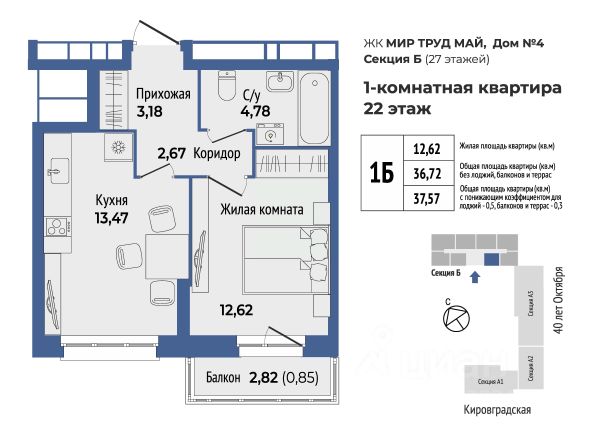 Продается 1 к квартира 176 в жилом комплексе МирТрудМай 4Б