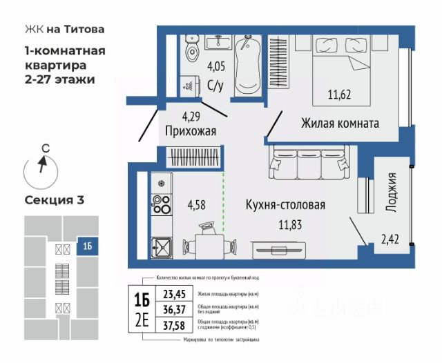 Продается 1 квартира 258. в жилом доме комфорт-класса.