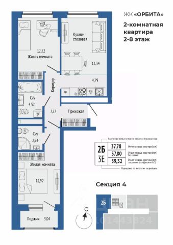 Продается 2 квартира 489. в жилом доме комфорт-класса.