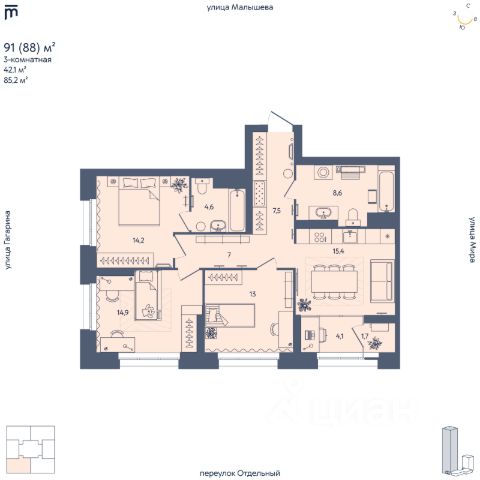 Жилой комплекс бизнес-класса "Отдельный, 5" рядом с УРФУ. Новый жилой комплекс бизнес-класса в Кировском районе Екатеринбурга (Втузгородок), расположенный в тихом квартале между улицами Малышева, Мира и Гагарина. Архитектурный ансамбль состоит из двух секций высотой 29 и 8 этажей, объединенных стилобатом с коммерческими помещениями и семейным кафе. Комплекс создан для комфортной и приватной жизни людей, ценящих простор, безопасность и современный уровень сервиса. Преимущества ЖК "Отдельный, 5" 1. Просторные и комфортные планировки бизнес-класса Минимальная площадь квартир начинается от 58 м². Предусмотрены варианты с просторными кухнями-гостиными, мастер-спальнями, кабинетами и функцинальными ванными. Теплая лоджия в каждой квартире. Места для колясок и велосипедов на этажах, а на -1 уровне — 69 кладовых помещений. В комплексе нет студий — только квартиры, созданные для жизни, а не для сдачи в аренду. 2. Двор без машин и с продуманным благоустройством Два уровня дворового пространства: на первом уровне — игровые зоны для детей 312 лет: горки, качели, дорожки для самокатов, скалодром, песочница. На стилобате — теплица-оранжерея, зоны для пикников, места для отдыха и уединения, шезлонги. Двор закрытый и безопасный, с контролем доступа для жителей. 3. Потолки 3 метра — пространство и свет. Во всех квартирах предусмотрены потолки 3 метра. Это создаёт ощущение свободы, улучшает естественное освещение и циркуляцию воздуха. 4. Комфортный и быстрый доступ к паркингу В доме 5 лифтов, из которых 4 спускаются прямо в подземный паркинг. Каждый лифт рассчитан на груз до 1000 кг — удобно для семей с детьми и покупками. 5. Обеспеченность машиноместами В комплексе предусмотрено 163 одиночных и 24 семейных машиномест (вмещает до 211 автомобилей) и 10 мотомест на 188 резиденций. Инфраструктура для электромобилей: предусмотрены 10 машиномест с возможностью установить собственную зарядку на 380В — питание подведено. Машиноместа доступны к покупке для всех жителей вне зависимости от площади квартиры. 6. Квартиры сдаются с отделкой под чистовую (выполнены все "грязные работы"). Что в нее входит: Оштукатурены стены. Возведены межкомнатные перегородки. Готовы стяжка пола и гидроизоляция пола в санузлах. Установлены радиаторы отопления. Разведены трубы в санузлах. Потолок — бетонная плита перекрытия. Предусмотрена дополнительная звукоизоляция межэтажных перекрытий: используется звукоизолирующий материал Пенотерм НПП ЛЭ (10 мм) с заведением на стену для примыкания стяжки. Поглощает ударный и звуковой шум. Локация и транспортная доступность ЖК "Отдельный, 5" находится во Втузгородке (Кировский район Екатеринбурга). Рядом — улица Малышева и проспект Ленина, но в доме сохраняется тишина даже с открытыми окнами. Удобный выезд в любую часть города. В шаговой доступности — учебные заведения, магазины, скверы, медицинские и спортивные центры. Запись на персональную консультацию, просмотр и бронирование квартир по телефону, звоните!
