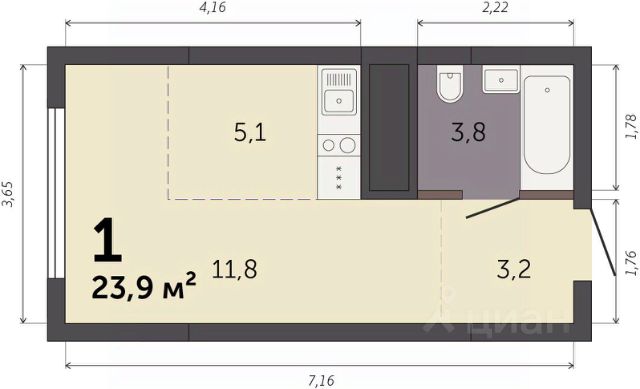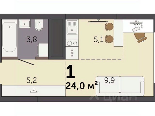 Продаётся студия в строящемся доме (Секция 1.1), срок сдачи: I-кв. 2028, общей площадью 23.9 кв.м., на 24 этаже. Новый жилой комплекс "Парк Культуры" от застройщика "СЗ Новый Дом" расположен по адресу: г. Екатеринбург, Базовый переулок.