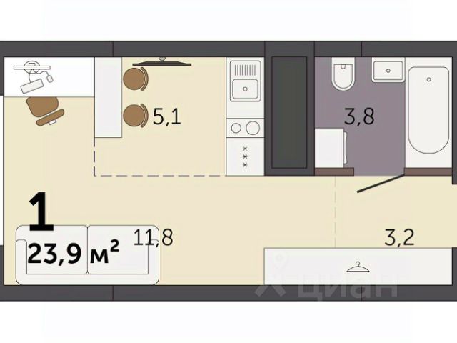 Продаётся студия в строящемся доме (Секция 1.1), срок сдачи: I-кв. 2028, общей площадью 23.9 кв.м., на 32 этаже. Новый жилой комплекс "Парк Культуры" от застройщика "СЗ Новый Дом" расположен по адресу: г. Екатеринбург, Базовый переулок.