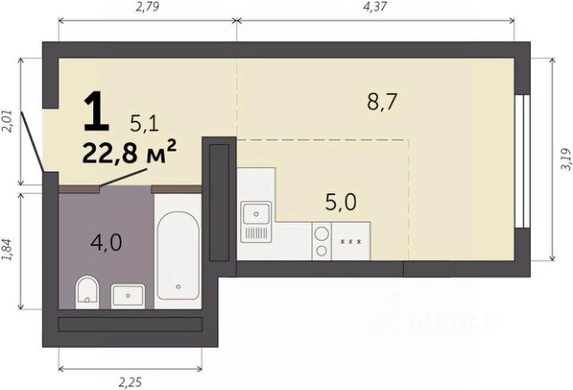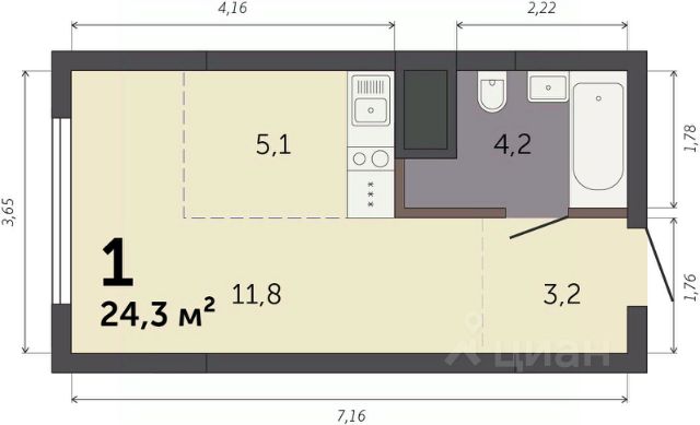 Продаётся студия в строящемся доме (Секция 1.1), срок сдачи: I-кв. 2028, общей площадью 22.8 кв.м., на 22 этаже. Новый жилой комплекс "Парк Культуры" от застройщика "СЗ Новый Дом" расположен по адресу: г. Екатеринбург, Базовый переулок.