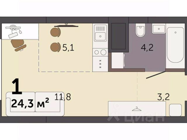 Продаётся студия в строящемся доме (Секция 1.1), срок сдачи: I-кв. 2028, общей площадью 24.3 кв.м., на 8 этаже. Новый жилой комплекс "Парк Культуры" от застройщика "СЗ Новый Дом" расположен по адресу: г. Екатеринбург, Базовый переулок.