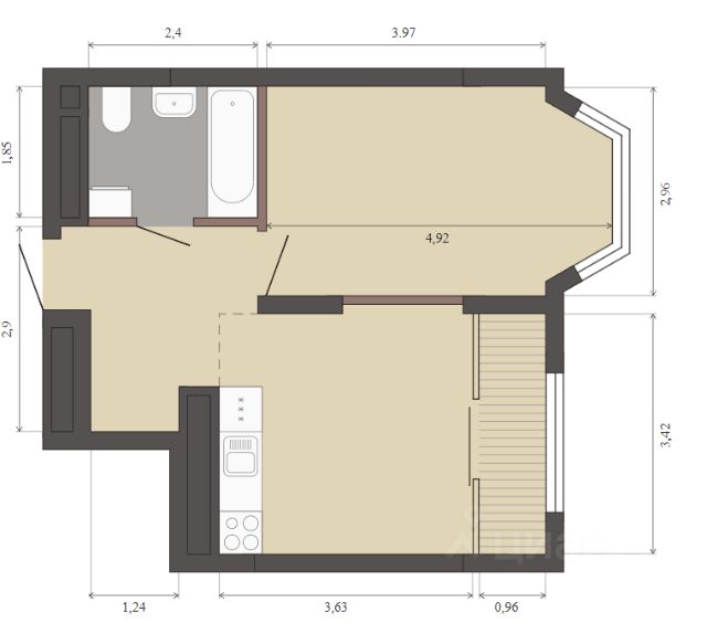 Объект N 194634. Продаётся уютная квартира эргономичной планировки, все комнаты правильной формы- фактически вы приобретаете 2 отдельные комнаты и просторную гостиную с функциональной кухней в доме комфорт класса!