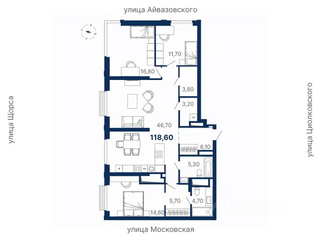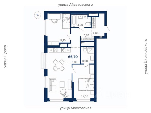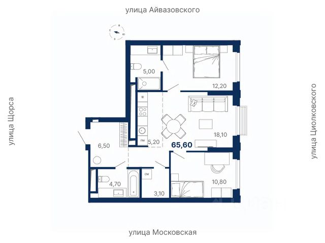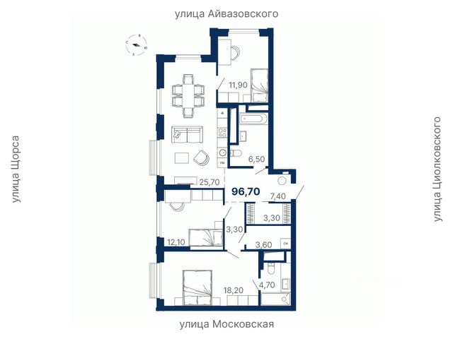 Квартира расположена на 5 этаже 32-этажного корпуса Токио. Окна выходят на юг.