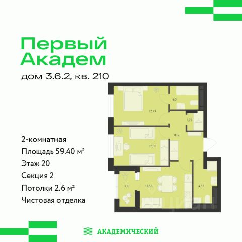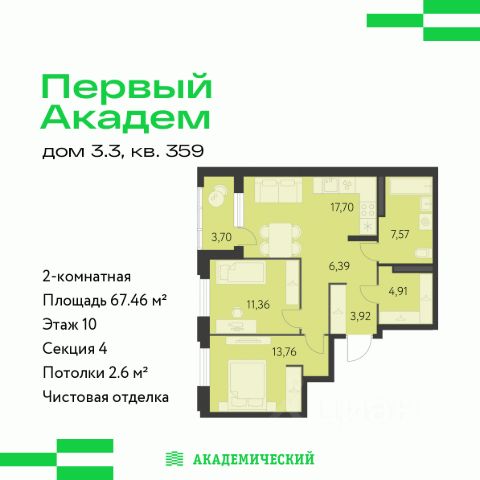 Продается 2-комнатная квартира площадью 47.7 кв.м. от девелопера "Академический" в жилом квартале "Первый Академ". Срок сдачи дома в 2028 году. Выгоды и скидка напрямую от застройщика. Дом расположен на въезде в район, отличается удобной транспортной развязкой. Рядом новая трамвайная линия и остановка общественного транспорта. Эко-тренды во дворах. Холлы и фасады в стиле ар-деко. В продаже имеются квартиры с видом на парк. На территории квартала предусмотрено множество удобств для жильцов, включая видеонаблюдение 24/7, двор без машин, кладовые и подземный паркинг с выходом из лифта, коммерция на первых этажах. В числе особых преимуществ близость к Юго-западному лесопарку и ТРЦ "Академический": магазины, кафе, парк развлечений, кинотеатр, фитнесс-центр с бассейном.