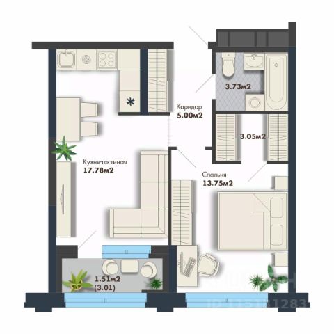 Студия 28,06м на 3 этаже в доме класса Комфорт + с чистовой отделкой.