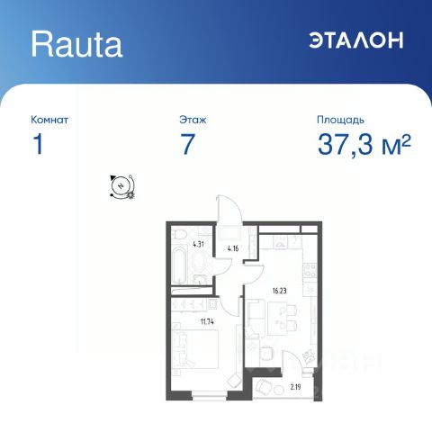 Продается 1-к квартира отделка White Box в ЖК "Rauta". Общая площадь квартиры — 37.3 кв. м, этаж 7 из 25. Тип дома — монолитный. Цена указана при 100% оплате.