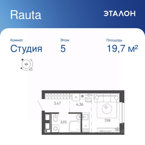 Продается студия отделка White Box в ЖК "Rauta". Общая площадь квартиры — 19.74 кв. м, этаж 5 из 24. Тип дома — монолитный. Цена указана при 100% оплате.