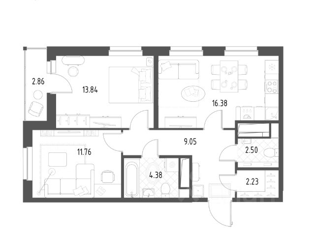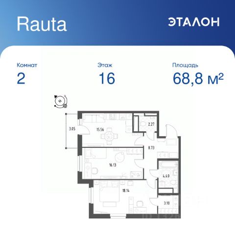 Продается 2-к квартира отделка White Box в ЖК "Rauta". Общая площадь квартиры — 68.8 кв. м, этаж 16 из 25. Тип дома — монолитный. Цена указана при 100% оплате.