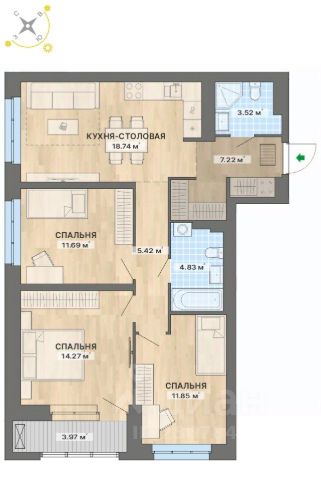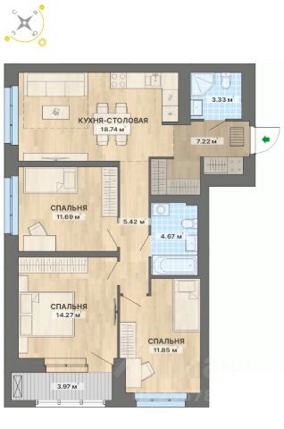 Квартира 109 в подъезде 3. Символические ворота новой очереди Академического — самого молодого и яркого района Екатеринбурга. Лента воды и фасад из красного кирпича напомнят о заводе-крепости, стоявшему ниже по течению реки Патрушихи. Почувствуйте, как трансформировался принцип "мой дом — моя крепость" в XXI веке! Парадный вестибюль с ресепшн. Комплексная система безопасности. Соседский центр. Двор-остров. Эргономичные планировки.