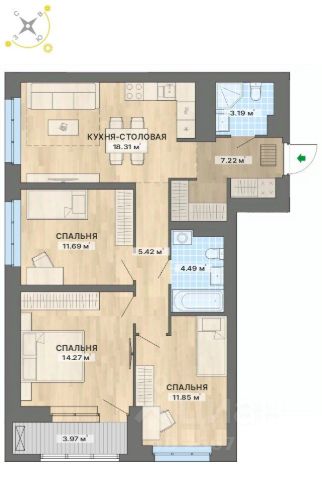 Квартира 321 в подъезде 3. Символические ворота новой очереди Академического — самого молодого и яркого района Екатеринбурга. Лента воды и фасад из красного кирпича напомнят о заводе-крепости, стоявшему ниже по течению реки Патрушихи. Почувствуйте, как трансформировался принцип "мой дом — моя крепость" в XXI веке! Парадный вестибюль с ресепшн. Комплексная система безопасности. Соседский центр. Двор-остров. Эргономичные планировки.