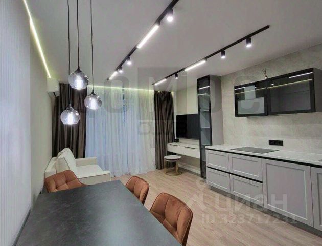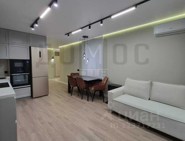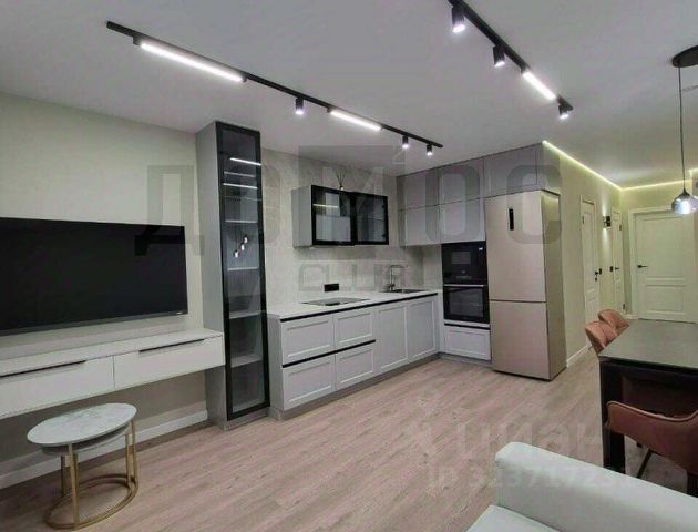 В квартире остается вся мебель, выполненная на заказ, кухонный гарнитур со столешницей из искусственного