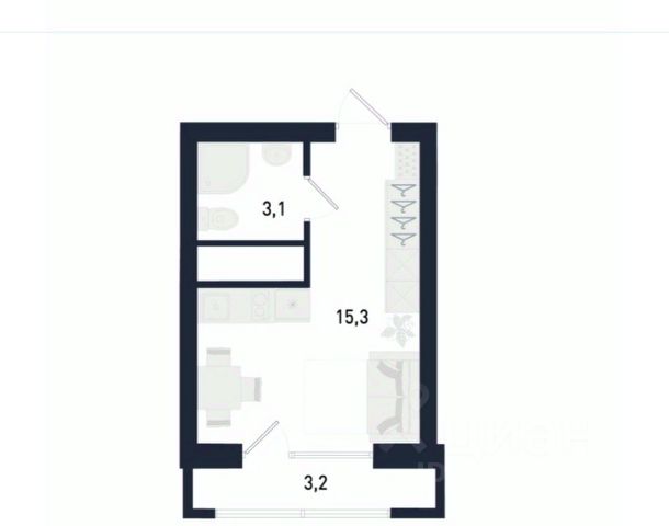 Новая кваpтиpa с уникальным расположением на этаже, современной планировкой формата студии и остекленной лоджией.