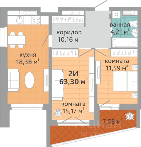 Продаётся 2-комнатная квартира в сданном доме (Коперника, 33), срок сдачи: III-кв. 2025, общей площадью 58.06 кв.м., на 24 этаже. Новый жилой дом от застройщика "СЗ Дельа-Групп" расположен по адресу: г. Екатеринбург, улица Викулова (дублёр).