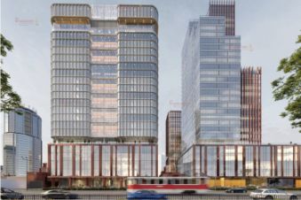 - В здании есть кофейня, гостиница, копировальный центр, юридические и туристические компании, банки