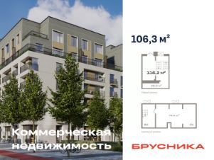 Помещение свободного назначения на -1 этаже, общая площадь 106.3 кв.м., без отделки. Стоимость помещения 17,730,000 руб., цена за кв.м 166,792 руб.