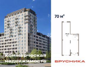 Помещение свободного назначения на 1 этаже, общая площадь 70.3 кв.м., без отделки. Стоимость помещения 13,630,000 руб., цена за кв.м 193,883 руб.