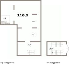 Помещение свободного назначения на -1 этаже, общая площадь 117.8 кв.м., без отделки. Стоимость помещения 14,070,000 руб., цена за кв.м 119,439 руб.
