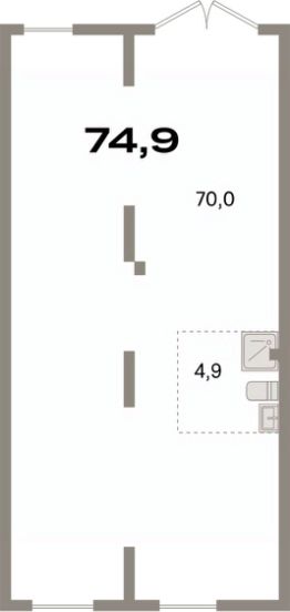 Помещение свободного назначения на 1 этаже, общая площадь 74.9 кв.м., без отделки. Стоимость помещения 15,720,000 руб., цена за кв.м 209,879 руб.