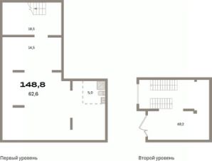 Помещение свободного назначения на -1 этаже, общая площадь 148.8 кв.м., без отделки. Стоимость помещения 17,620,000 руб., цена за кв.м 118,413 руб.