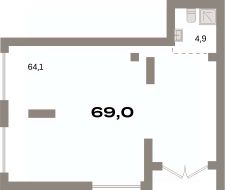 Помещение свободного назначения на 1 этаже, общая площадь 69 кв.м., без отделки. Стоимость помещения 15,500,000 руб., цена за кв.м 224,637 руб.