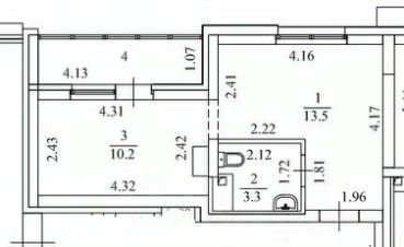 Общая площадь - 42.5 кв.м.