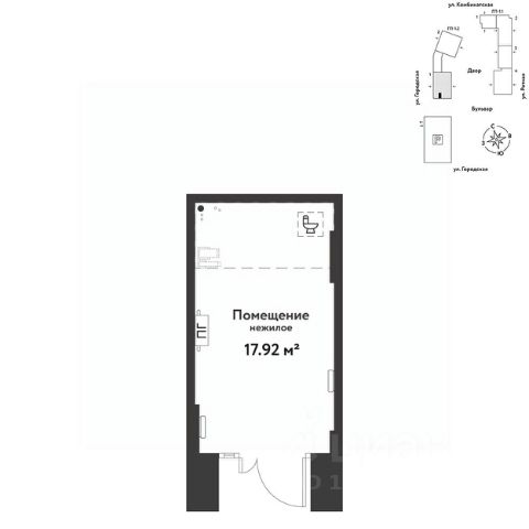 - Помещение расположено на первом этаже жилого 25-этажного дома в окружении жилого массива.