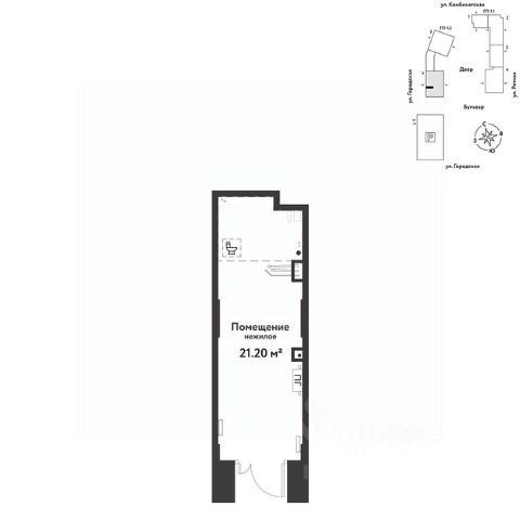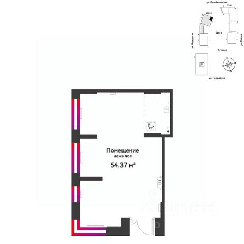 Объект состоит из нескольких комнат: 2 торговых зала и подсобное помещение . Есть кондиционер. Отдельная входная группа на ул. Луначарского. Есть пожарный выход.