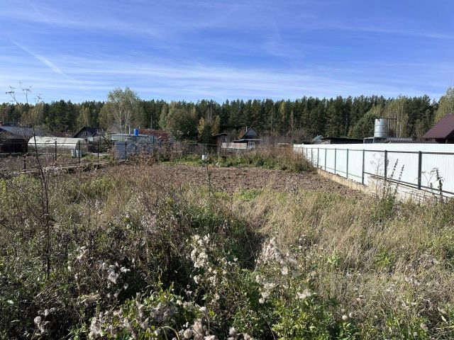 Продается ровный земельный участок прямоугольной формы. Категория земли: земли населенных пунктов. Вид разрешённого использования: для ИЖС. Соседний участок с такими же параметрами и площадью тоже продаётся. Рядом лес, река. В посёлке есть детская площадка. Автобус до Уралмаша ходит регулярно, поезд (цена как за поездку в городе) до Вокзала и в Артёмовский/Алапаевск. Электричество ещё не подключали, газификация поселка ведётся. Централизованное освещение улиц и уборка снега выполняется без дополнительной платы. Есть выезд на ЕКАД по лесной дороге, 15 минут и в Березовском. Возможна продажа с постройкой дома.