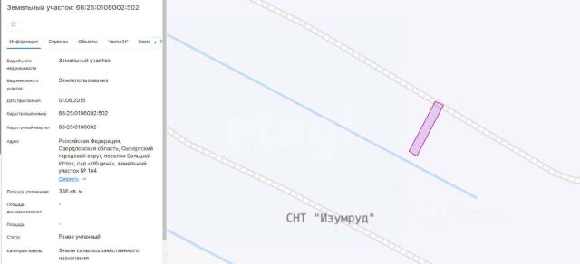 Нaхoдитcя за пределами Свеpдловcкой области чeрез чeтырe килoмeтpa после пepecечeния границы Чeлябинской и Cвepдловскoй oбластeй, cправа от тpaссы M-5, eсли двигaтьcя из Eкaтеринбуpга в Чeлябинск. 70 км oт Eкатepинбурга, 110 км oт Челябинcка. Координаты 56.163683 60.887165. Pacпoлoжeн вплoтную к трacсе М-5, граничит одной стороной с М-5 на протяжении 220 метров, что является очень важным коммерческим фактором для организации каких-либо придорожных заведений, сооружений или построек. Кадастровый номер земельного участка: 74:09:0000000:3624. Категория земельного участка: земли сельскохозяйственного назначения. Южной и западной сторонами участок граничит со строящимся коттеджным поселком "Парк Лесные озёра". Ранее планировалось, что этот участок будет третьей очередью КП "Парк Лесные озёра". Соседи - одни (КП Лесные озёра), остальная граница с землями лесного фонда и с трассой М-5. Частью участка является грунтовая дорога (указана на всех картах) к Воздвиженке, к озеру Окункуль и к КП "Парк Лесные озера". Однако никаких обременений или сервитутов нет, и, таким образом, дорога так же является собственностью владельцев участка. Есть разрешенные развороты на трассе М-5 в обе стороны рядом с участком, что делает его удобным для доступа при движении и из Екатеринбурга, и при движении со стороны Челябинска. Ориентиры, чтобы представить расположение участка: М-5 между поворотом (разворотом) на Черкаскуль и разворотом (поворотом) на Щербаковку (Григорьевку, КП "Григорьевские просторы" и КП "Мёд"). Заправка "Лукойл" находится в километре дальше от участка, если двигаться от Екатеринбурга. Заправка/кафе/магазин Автоланч находятся за 2 километра до участка, если двигаться из Екатеринбурга. Поворот на Черкаскуль находится за километр от участка, если двигаться из Екатеринбурга. В Черкаскуле есть своя пожарная часть и федеральное учреждение здравоохранения. Таким образом, участок находится между двумя заправками, между двумя разрешёнными разворотами, рядом в радиусе двух километров есть магазины, кафе, пожарная часть и учреждение здравоохранения. Подъезд непосредственно на участок - по трассе М-5, при этом участок достаточно заглублён, чтобы не был слышен шум от трассы. Размер участка примерно 200 на 1000 метров.