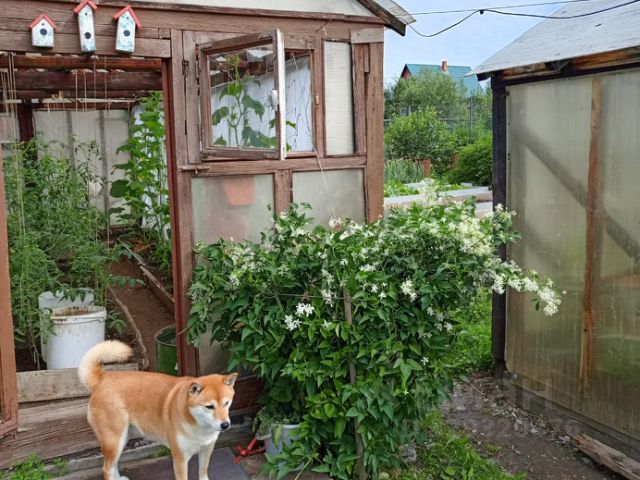 На участке недавно поставили новую теплицу 3х4м из поликарбоната и новый туалет.