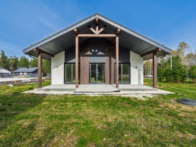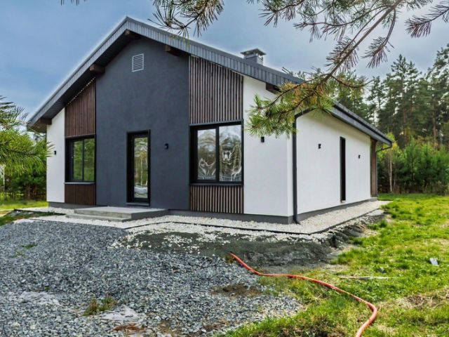Фасад оштукатурен, но не отделан, это поле для вашего дизайнерского решения.