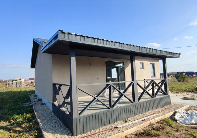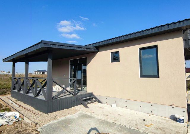 Фундамент утепленный - сваи (глубина 2 метра) с шагом 2,5 метра, ростверк 60см, арматура 12мм стальная, отмостка 1 метр, монолитная плита армированная, ж/б армопояс, бетонные перемычки над проемами, механическая штукатурка стен, полусухая стяжка полов.