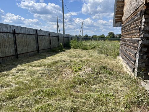 участок ровный, с 3х сторон стоят столбики под забор, на участке есть вагончик-дом, скважина (65 м), туалет, разработано примерно 4 сот. под огород. соседи живут круглогодично. стартовало строительство путепровода через железную дорогу в Логиново. обещают закончить в 27м году.