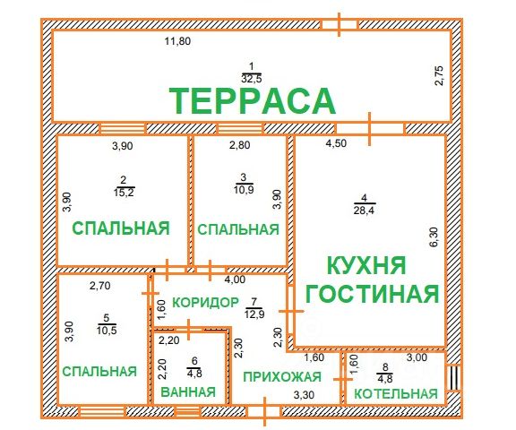 Продаётся просторный и уютный дом с 4 жилыми комнатами. В доме есть 2 санузла, а также широкий коридор и котельная. Дом готов к отделке помещений под ваш индивидуальный вкус. Для комфортной жизни здесь установлена насосная станция с глубинным насосом и бойлер на 100 литров для горячей воды. Отопление осуществляется с помощью тёплых полов. Для водоснабжения есть скважина глубиной 60 метров, а для очистки сточных вод - био-септик на 7 кубов. Котельная оборудована всем необходимым для комфортной эксплуатации дома. Также есть возможность подключения к газу. Межкомнатные стены выполнены из твинблока толщиной 100/200 мм, что обеспечивает отличную шумоизоляцию. Входная дверь - стальная, обеспечивающая безопасность и надёжность. В доме также есть гостиная с кухонной зоной и большие панорамные окна в пол, которые позволяют наслаждаться красивым видом на участок. Из дома есть выход во двор, где расположен большой участок. При покупке этого дома вы можете воспользоваться ипотекой любого банка, а первоначальный взнос составит всего 20%. Не упустите возможность приобрести такой уютный и комфортный дом! Текущая цена указана в предчистовой отделке, можем сделать под ключ, при необходимости (примерно как на фотографиях) Потолки натяжные уже смонтированы во всех помещениях. В стоимость входит терраса во дворе, с выходом на неё из гостиной есть СПП