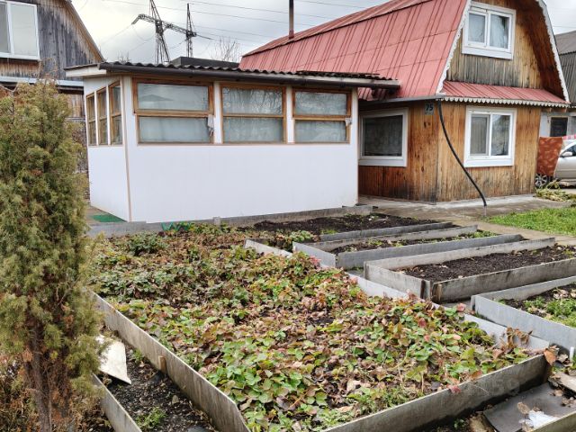 На участке: две капитальные теплицы, закрытая беседка (проведен свет), мастерская, кладовая, плодовые деревья и кустарники: яблони, малина, ирга, жимолость, облепиха, калина, черноплодная рябина, смородина, крыжовник, клубника. Есть скважина, бак, проведены трубы по участку для полива. В СНТ есть общая скважина.