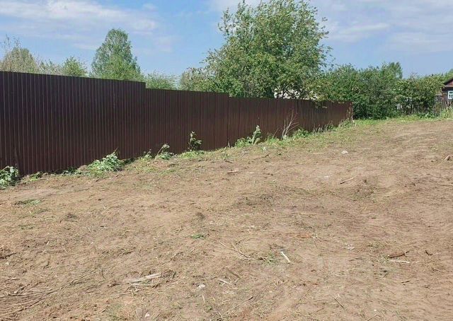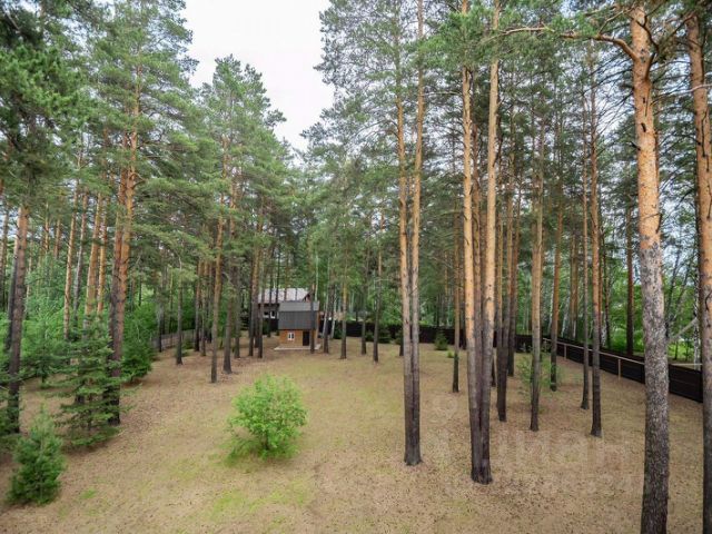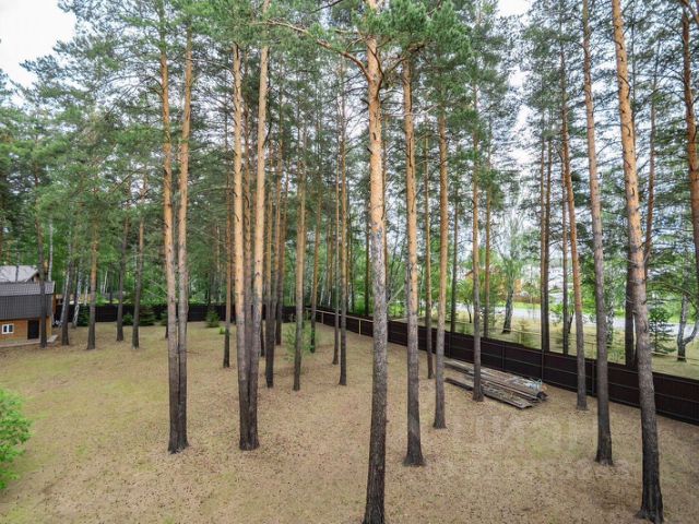 Участок огорожен металлическим забором, на территории — сосновый лес, грибы, ягоды, подъезд — асфальтированная дорога.