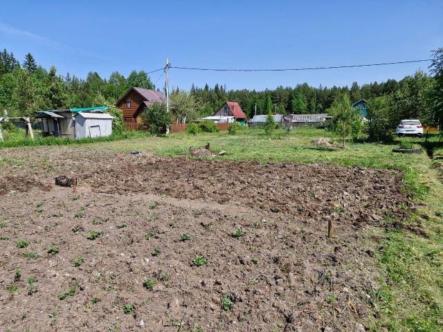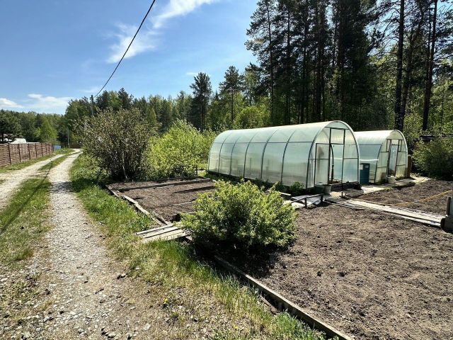 На участке оборудованы грядки под различные насаждения, а также есть теплица, плодоносные деревья и кустарники.