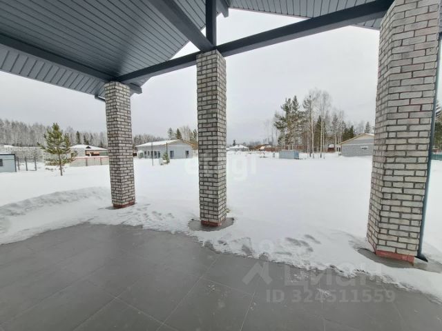 Современный и практичный фасад, из белого кирпича, который дополняют точечные, уличные светильники. Входная группа оформлена большим крыльцом, которое располагается под отдельной крышей. Крыльцо выполнено из монолита, облицованного плиткой. Для удобства подъема, спуска сделаны ступени. На крыльцо выведено освещение. Установлена современная, морозостойкая входная дверь.