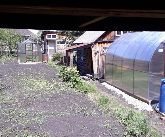 На участке есть каркас теплицы 12*3м, много плодовых деревьев и кустов (3 яблони, 1 ВКУСНАЯ груша, вишня, черная смородина 3 куста, 1 куст красной смородины, крыжовник), большая грядка клубники, малина, жимолость 4 куста. Есть место для посадки других культур. В центре участка газон 8*6м, засеян газонной травой. Есть большой сарай, дровенник для топки бани, крытая беседка с печью и мангалом (летом можно в беседке спать). Есть турник и песочница. Для полива участка есть бак 2м3 набор воды со скважины, разводка поливочных труб по всем участку для поливки водой с бака.