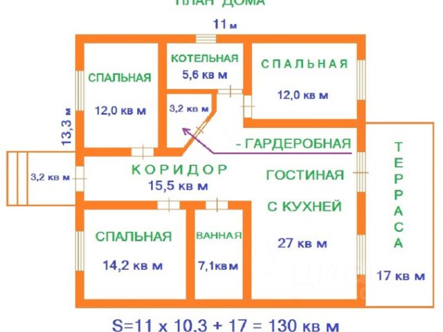 Описание дома • Современный 1-этажный коттедж в пригороде Екатеринбурга • Расположен на ровном земельном участке у соснового леса и реки • Проект Зеленая пристань с жилой площадью 98 кв метров и большой крытой террасой Конструкция и материалы • Несущие стены из ТВИНБЛОКа, межкомнатные стены из ТВИНБЛОКа и железобетонная плита перекрытия пола • В доме 9 помещений: 4 жилые комнаты, гостиная с кухонной зоной, 3 спальни, санузел, котельная с функцией 2-го сан узла, прихожая, коридор, крытая терраса, крыльцо Вентиляция и водоснабжение • Каждое помещение имеет автономную вентиляционную систему !!! • Ванная с сантехникой и разводкой под стиральную машину • Котельная с импортным электрическим котлом, скважиной, автономной станцией водоснабжения, бойлером Отделка и отопление • Отделка под ключ с использованием современных материалов: натяжные потолки, керамогранит, пластиковые окна, стальная сейф-дверь на входе • Во всём доме энергоэфефктивные теплые полы, отопление водяное от электрокотла, в посёлке есть газ Расположение и удобства • Окна расположены на юг, восток и запад, что обеспечивает естественное освещение весь день • В кухне-гостиной панорамное окно с выходом на террасу и во двор • Удачное расположение спален с видом на восход и закат Инфраструктура и документы • В шаговой доступности продуктовый магазин, остановка автобуса, в поселке есть школа, садик, промышленные магазины и даже заправка ГСМ • Дом и земельный участок оформлены в собственность на Застройщика, один собственник, без обременений и долгов • Документы к продаже готовы, оперативный показ, ипотека любого банка, любая программа