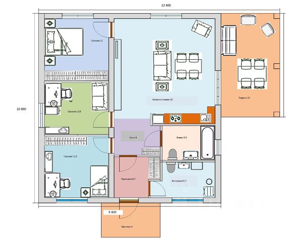• ✅ Минимальная площадь: 105 м²