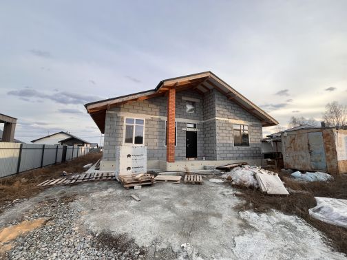 Кратко о главном: Площадь: 135 м², 1 этаж, потолки 3,3 м Участок: 7 соток (ИЖС), терраса 24 м², парковка отсыпана щебнем Статус: строительные работы приостановлены — коробка, кровля, окна и инженерные вводы готовы. Причина продажи: не хватает средств завершить отделку; передаю покупателю проект и всю исполнительную документацию. Цена: 8 900 000 ₽ как есть. Планировка Кухня-гостиная 40 м² с выходом на крытую террасу • мастер-спальня + гардероб • две детские / гостевые • кабинет • 2 санузла • котельная-постирочная. 5 причин, почему этот объект — находка: 1. Максимум площади за минимальную цену 135 м² + 7 соток = всего 66 000 ₽/м². На рынке посёлка сегодня средний метр стоит 90100 тыс. Экономия при покупке — до 3 млн ₽. 2. Качество, которое можно потрогать и посмотреть пока все не зашито и не замазано. Делали для себя. - Буросваи 300 мм (2,5 м) + монолитный ростверк В25. - Газоблок ИНСИ D500 300 мм с армопоясом; кладочная сетка в каждом 3-м ряду. - Кровля металлочерепица 0,5 мм, утепление 250 мм минваты, снегозадержатели. - 5-камерные окна 70 мм с энергостеклом. Все акты, чеки и проект — в папке, покажу при встрече. 3.Планировка без компромиссов Студия-гостиная 40 м² с выходом на крытую террасу 24 м² (летняя кухня/лаунж-зона). Две отдельные спальни + кабинет. 2 санузла, котельная-постирочная. Потолки 3,3 м — воздух и свет в каждом помещении. 4. Инженерия уже заведена Скважина 65 м с греющим кабелем и анализом воды. Электрика 15 кВт/380 В, медь, диф-автоматы. Закладная под газ — посёлок в программе газификации-2026. 5. Локация для жизни и отдыха Охрана 24/7, асфальт до участка, видеонаблюдение, интернет 500 Мбит/с. Лес и озеро — 300 м, конный клуб Белая лошадь — 5 мин пешком. До ЕКАД 17 мин, до Сысерти 9 км; школа, сад, магазины и медцентр — 10-12 мин на авто. Финансы и документы Цена: 8 900 000 ₽ как есть. Ипотека: семейная 6 %, IT-, военная, сельская — объект стоит на кадастре, сопровождение и одобрение бесплатно. Гарантия: 5 лет на несущие конструкции (переуступка подрядного договора). Причина продажи: не хватает средств завершить отделку. Захотите достроить и продать - получится еще и заработать. Обратите внимание что дом построен не по типовому проекту, а индивидуально разработан с учетом геологических исследований. Проект, рабочая документация и все сопутствующие документы при встрече. Гарантия по договору строительства. Соседние дома по типовым проектам сделанные за 2-3 месяца сильно уступают по качеству, что видно и ощутимо при эксплуатации. При продаже отдадим пакет документов на двери, окна и прочее оборудование. Водоснабжение - скважина 65м. с проверкой воды Электрооборудование - от существующей сети разведено по Гост, Отсыпана зона парковки Терраса Электричество 15кв. 380 вольт По проекту Отделка фасада - комбинированная Штукатурка + Планкен + Искусственный камень Внутренние перегородки - Газоблок, кирпич