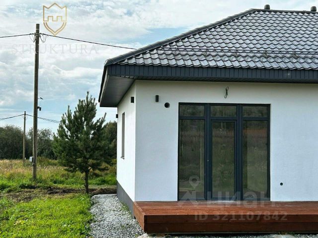 Новый современный загородный дом. Наш небольшой, но очень светлый и уютный Дом был специально разработан и спроектирован с учетом пожеланий молодых семей. Планировка дом включает в себя: - гостиная с панорамным окнам и выходом на террасу - кухня - обеденная зона - две спальни, расположены в отдельной зоне - ванная комната, котельная. - теплый тамбур - большая гардеробная комната В доме выполнена чистовая отделка: - на полу: качественный ламинат уложен одним ковром по всему дому без стыков и порогов - в мокрых зонах сделан керамогранит с теплым полом - стены в комнатах оклеены обоями - ванная комната облицована плиткой - установлены коллекционные межкомнатные двери - входная дверь сделана на заказ, толщеной 140 мм с терморазрывом и тонированным четырехкамерным стеклопакетам. - окна 70 профиль с энергосберегающими стеклопакетами, фурнитура фирмы Roto. - панорамное окно в зале имеет откатную дверь, что положительно сказывается на комфорте и безопасности. - натяжные потолки с люстрами и точечными светильниками сделаны по всему дому, также для комфорта установлены переходные выключатели. Дом построен с соблюдением строительных нормативов: - Фундамент: армированная плита 300 мм. - Стены: твинблок 400, фасадный утеплитель, декоративная штукатурка. - Перекрытия: железобетонные плиты. - Крыша: кровля 200 мм перекрестный утеплитель, полусухая стяжка, наплавляемая гибкая черепица Технониколь. - Высота потолка 3 метра - Отопление: экономичный водяной электрокател Thermex с технологией Умный дом, радиаторы. - Вода: скважина 54 м (питьевая) - Канализация: локальная 6 куб. Участок: - Большой 9.7 соток, прямоугольный, ровный - Огорожен по периметру забором - Установлены калитка, распашные ворота для заезда во двор - На заднем дворе установлена крытая веранда с мангалом для вечерних посиделок. Звоните, приезжайте на просмотр Вашего загородного дома!