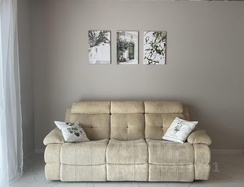 Удобная планировка: светлая кухня-гостиная 30,8 м2 с выходом на террасу, 3 спальные комнаты 11, 12 и 15 м2, санузел 7 м2 и котельная. В кухне-гостиной установлены рулонные шторы, остается качественная большая кухня со встроенной техникой (керамическая варочная поверхность, духовой шкаф, вытяжка, посудомоечная машина), обеденный стол, подвесная тумба под тв, журнальный стол и большой удобный диван.